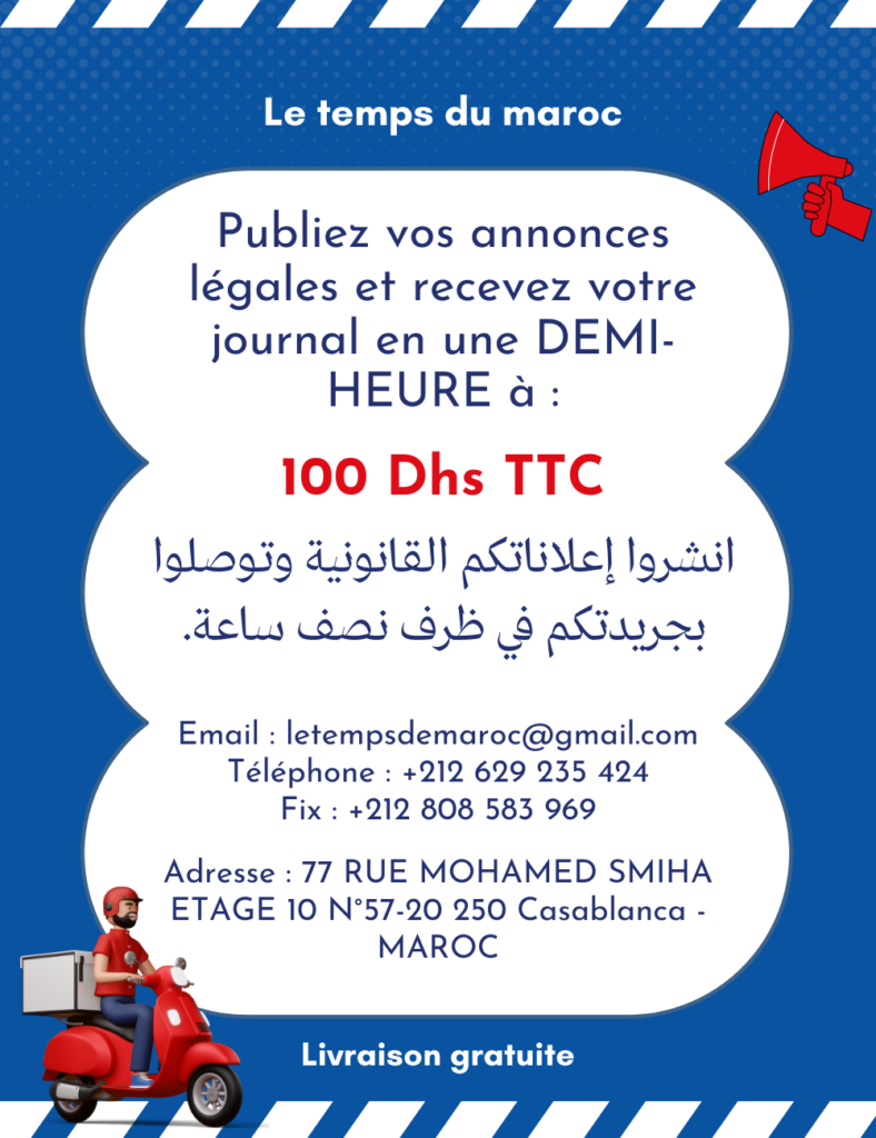 Plateforme spécialisée dans la publication des annonces légales, administratives et judiciaires au Maroc, ainsi que dans la diffusion des principales actualités hebdomadaires destinées aux citoyens, professionnels et entreprises